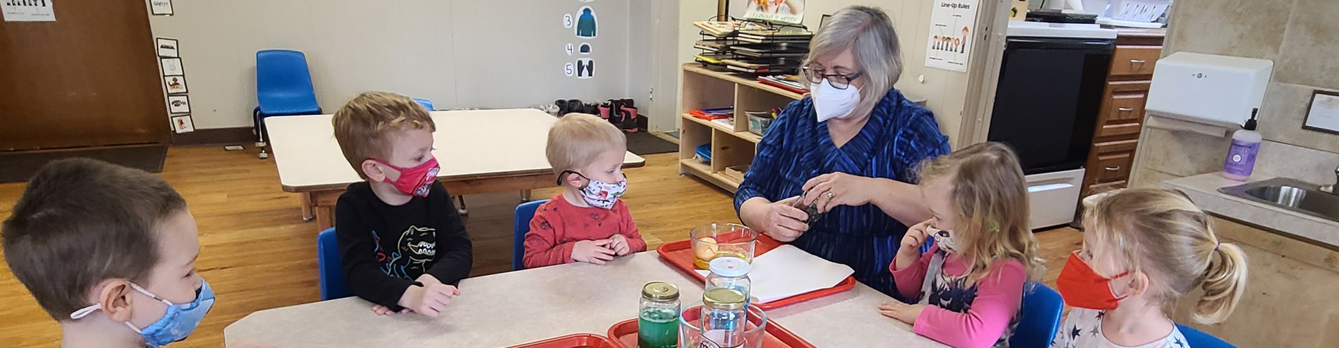 A big part of being a 2- or 3-year-old is learning to be away from family for periods of time at preschool. The children learn they are in a safe and caring place, and that their family will return for them at the end of their day. Children also work on toilet training, a major milestone. The children are guided with this skill from diapers to the child-size toilet.